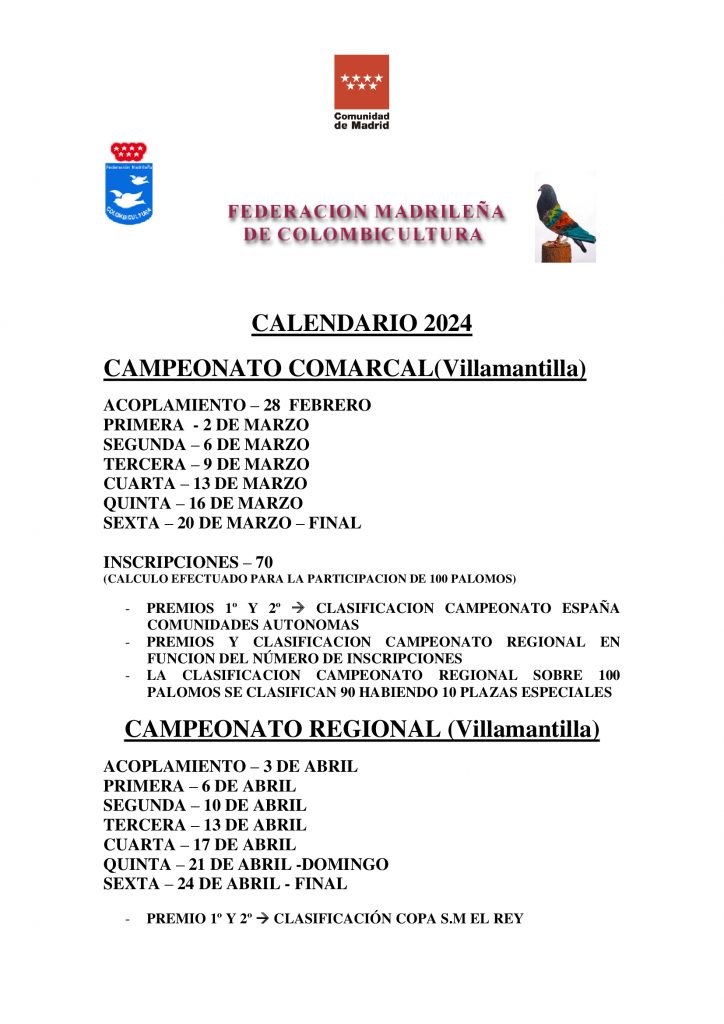 CALENDARIO DE COMPETICIONES REAL FEDERACION ESPAÑOLA DE COLOMBICULTURA, EN EL SIGUIENTE ENLACE: