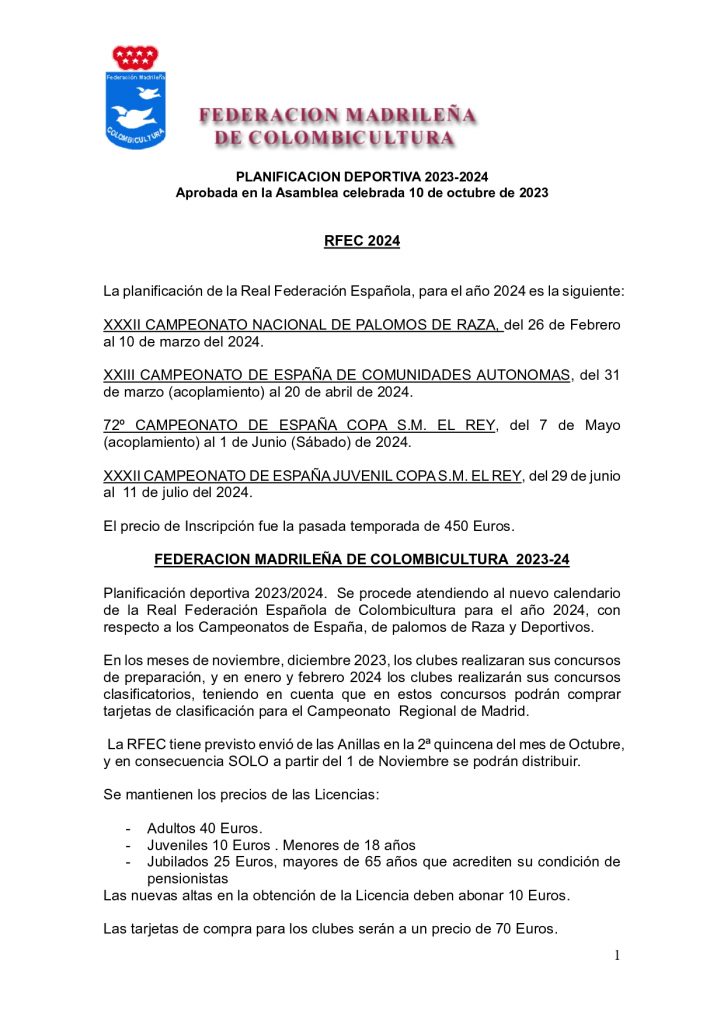 PLANIFICACION DEPORTIVA 2024/25 APROBADA POR LA ASAMBLEA DE LA FEDERACION