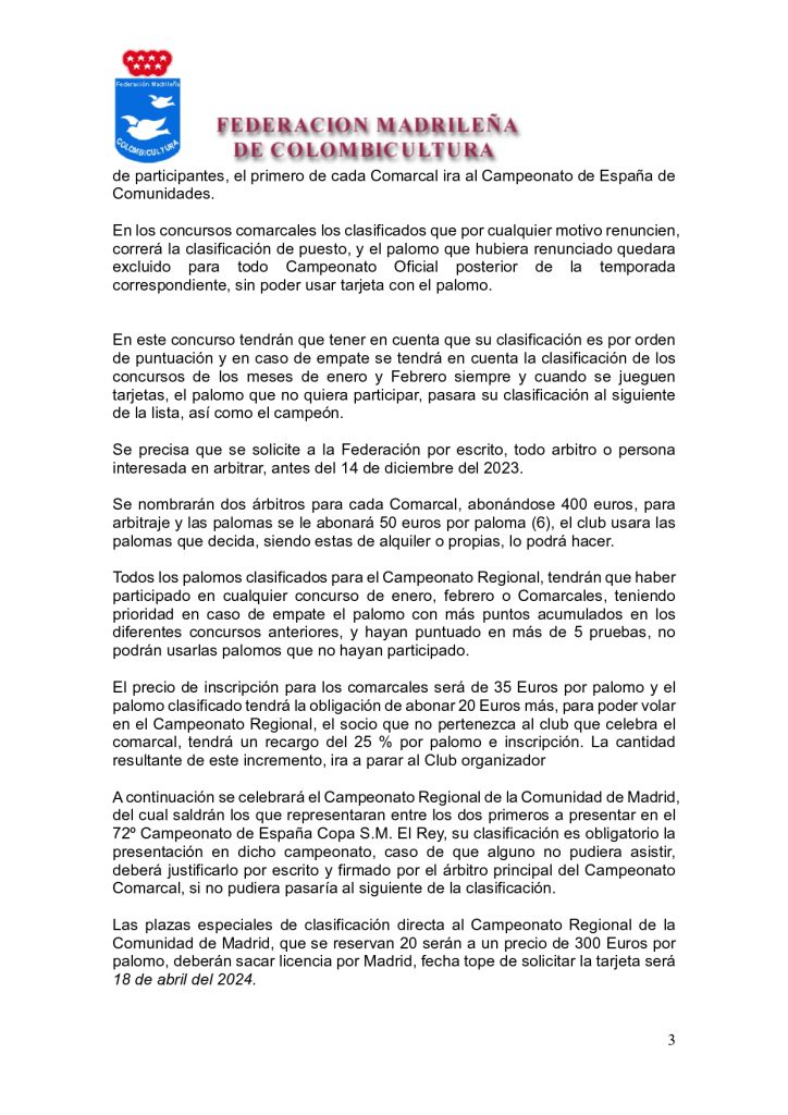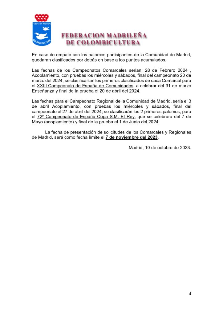 CALENDARIO DE COMPETICIONES REAL FEDERACION ESPAÑOLA DE COLOMBICULTURA, EN EL SIGUIENTE ENLACE:
