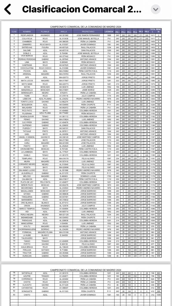 - RESULTADOS DEFINITIVOS DEL 35 CAMPEONATO REGIONAL DE COLOMBICULTURA DE LA COMUNIDAD DE MADRID
